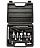 Цанговый зажим позволяет устанавливать различные насадки. Комплект состоит из 15 предметов и поставляется в пластиковом кейсе.