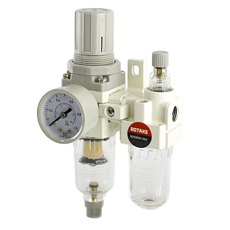 Объединяет в себе: воздушный фильтр-осушитель, редуктор давления с манометром и лубрикатор.
